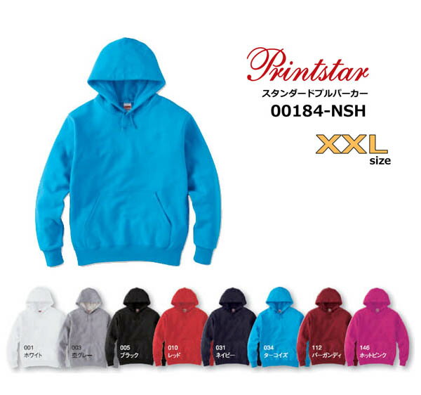 プルオーバーパーカ/【XXLサイズ】PRINTSTAR(プリントスター) 9oz. スタンダード プルパーカー 【裏毛・裏パイル】00184-NSH(メンズ・ビッグ・大きいサイズ・)無地 スウェット【1220】