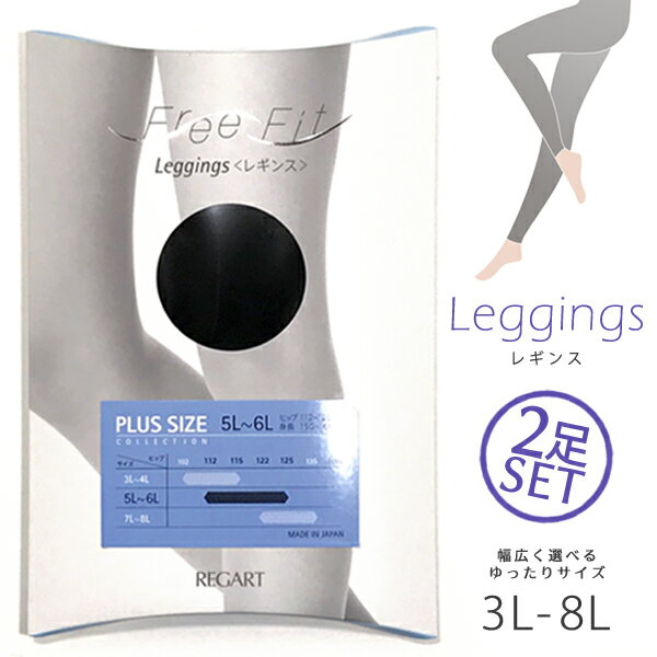 [ネコポス送料無料] 大きいサイズのレギンス【2枚セット】[3L 4L 5L 6L 7L 8L] Piedo/FreeFit(ピエド・フリーフィット)日本製・ゆったりのびのびサイズ・ブラック【RCP】(308-21P)