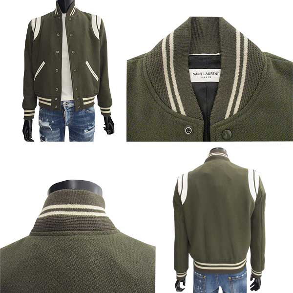 ギフト対応サンローラン パリ(SAINT LAURENT PARIS) メンズ アウター ジャケット 定番アイテム・スタジアムジャケット カーキ354718 Y213QEX Y213U 1360 ブランド サンローラン パリ(SAINT LAURENT PARIS) シーズン 2017年 秋冬 スタイルメンズ アウター ジャケット 定番アイテム・スタジアムジャケット カーキ 素材ウール 90% ナイロン 10% トリム部分:羊革 100% 仕様 ●サイズS:身幅 54cm / 袖丈 61cm / 肩幅 45cm / 着丈 62cm M:身幅 55cm / 袖丈 62cm / 肩幅 46cm / 着丈 62cm ※平置き実寸のため 多少の誤差は御了承願います。